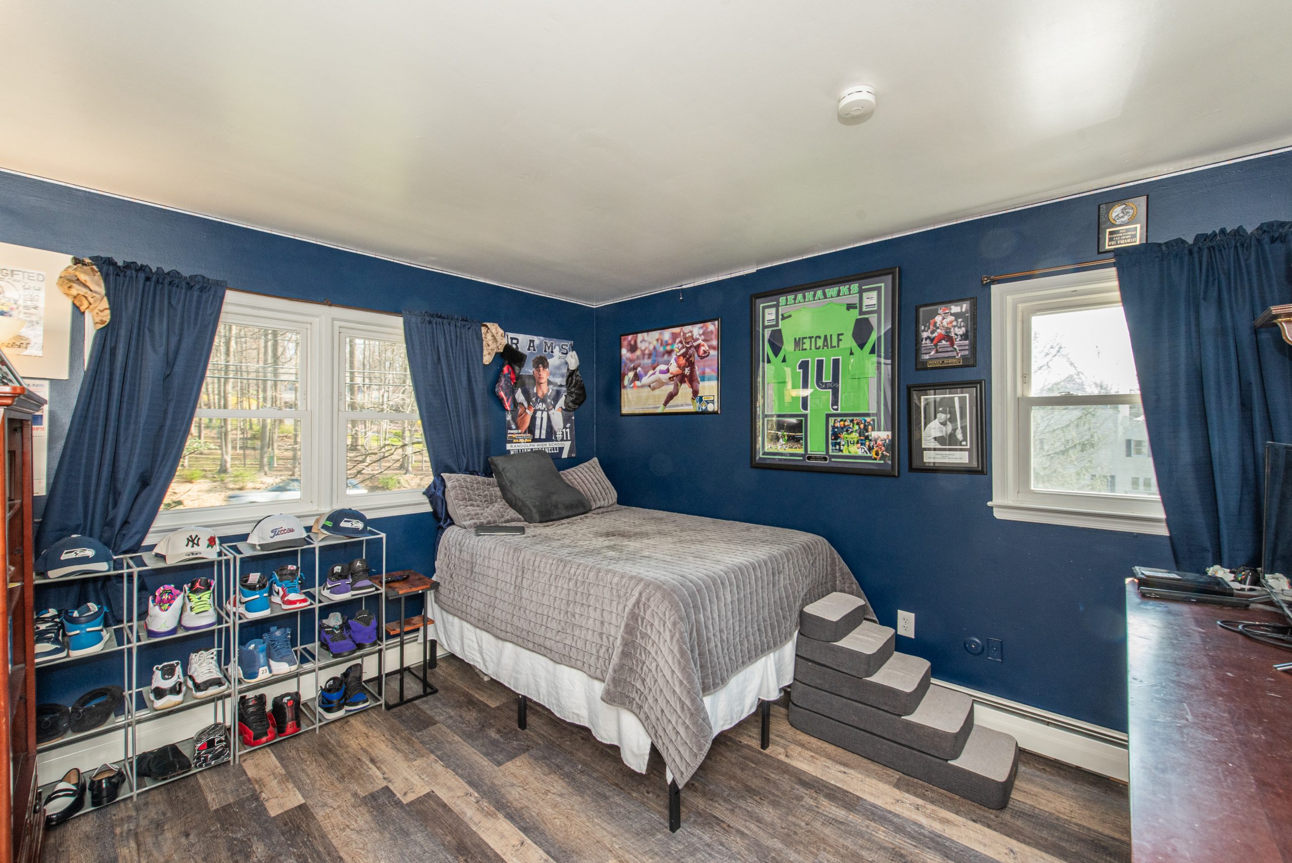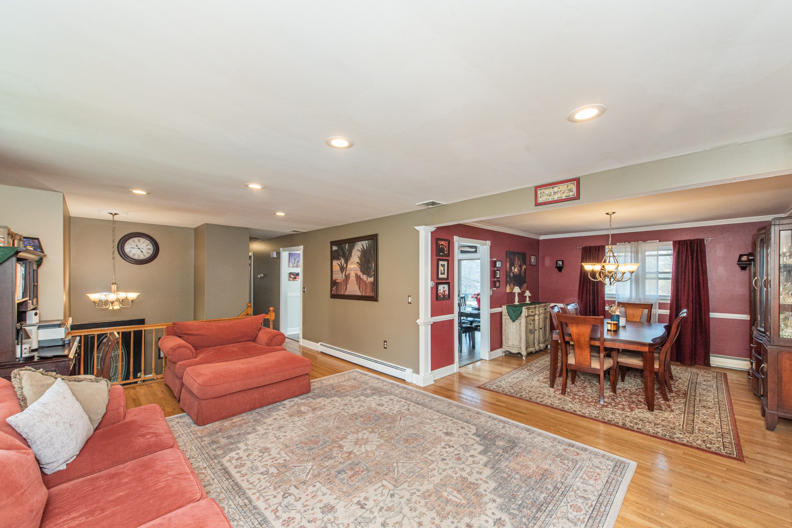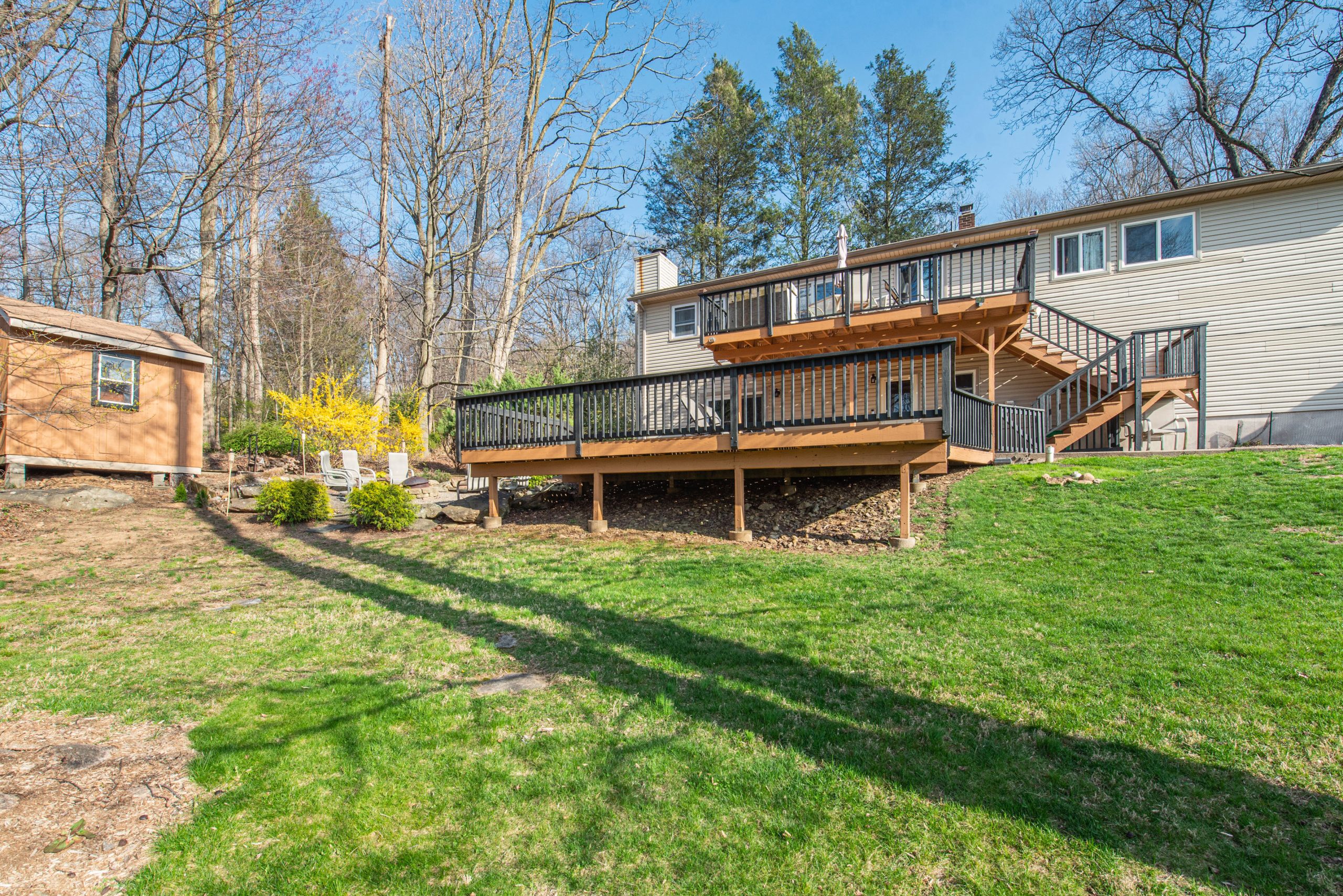 Welcome home to this beautifully maintained bi-level in the highly sought-after Center Grove Elementary section of Randolph. Set on a peaceful corner lot, this home features a long, two-car-width paved driveway off Carriage Court, a quiet cul-de-sac street offering privacy and minimal traffic. Inside, enjoy an oversized living room filled with natural light, oversized windows, and gleaming hardwood floors. The spacious kitchen offers granite countertops, abundant cabinetry, a dedicated dining area, and sliding doors leading to an enormous two level deck, perfect for entertaining and summer barbecues with an unmatched backyard view of the annual township fireworks display. The main level also includes a formal dining room, three generously sized bedrooms, including a primary suite with a private full bath, plus an additional full hallway bathroom.The ground level adds incredible flexibility with direct two-car garage access, laundry room, a fourth bedroom, a half bath, and a family room featuring a wood-burning fireplace and sliders to the backyard patio and fire pit. Situated on just over an acre with many mature trees offering privacy from the road and neighboring properties, this home also includes two storage sheds, a paver walkway, a brand-new above-ground oil tank, a 4-year-old boiler, 1 year old roof, beautifully redone deck, and central air for year-round comfort. A rare opportunity to own this home offering space, privacy, and a great location close by to everything.